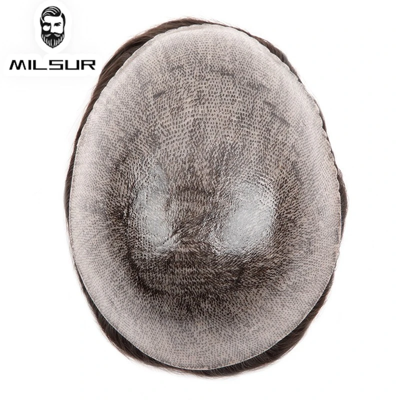 Thinner 0 08mm Thickness Full Pu Mens Toupee Human Hair Medium Length Toupee Hair Wig Brown Wish